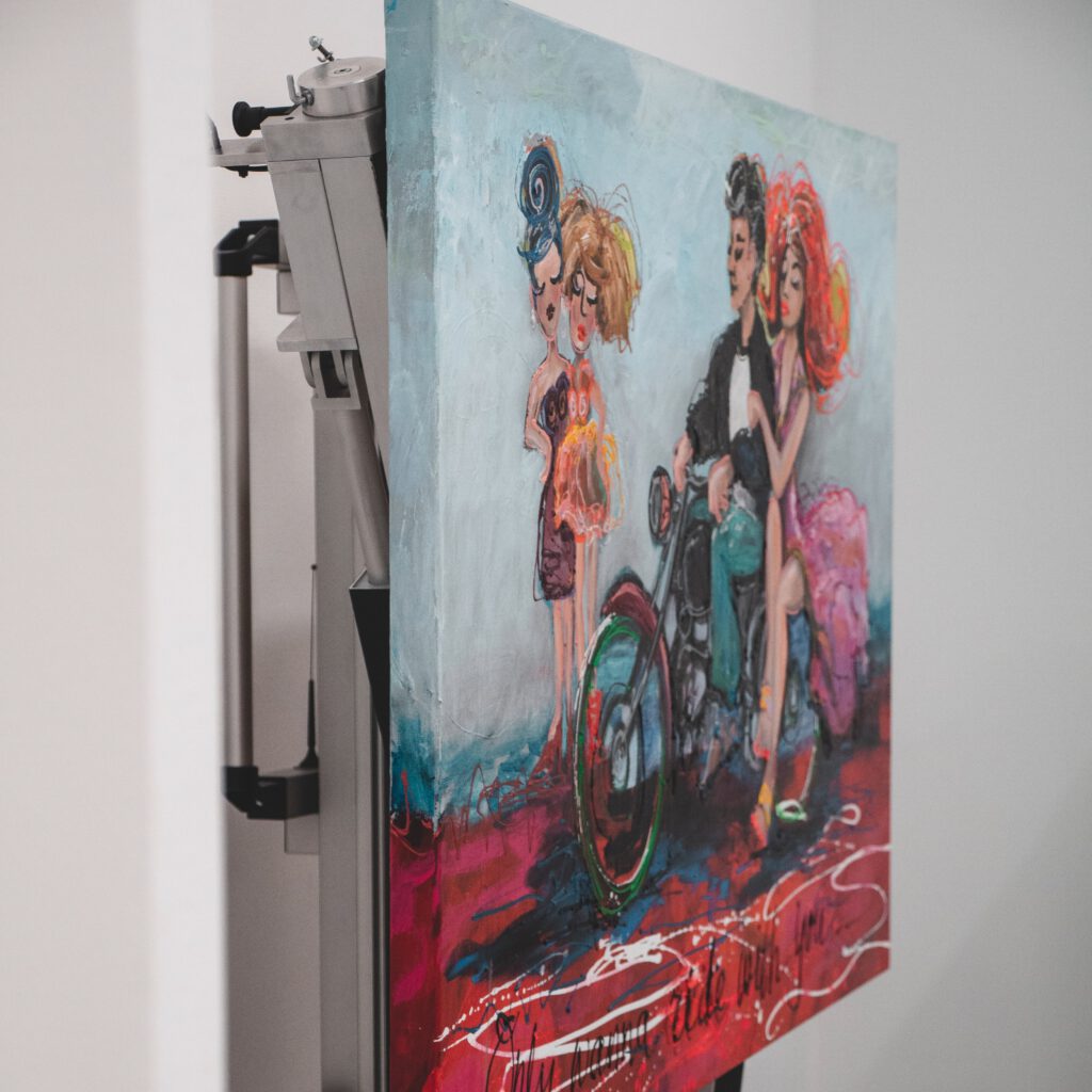 Met de Exalynz kan dat. Zolang het kunstwerk nog aan het apparaat hangt, is elke correctie mogelijk — tot op de millimeter nauwkeurig.